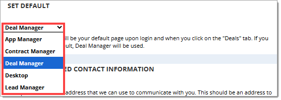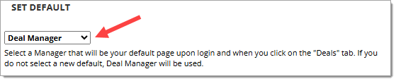 To select your default page, click on the dropdown menu and select one of the options.