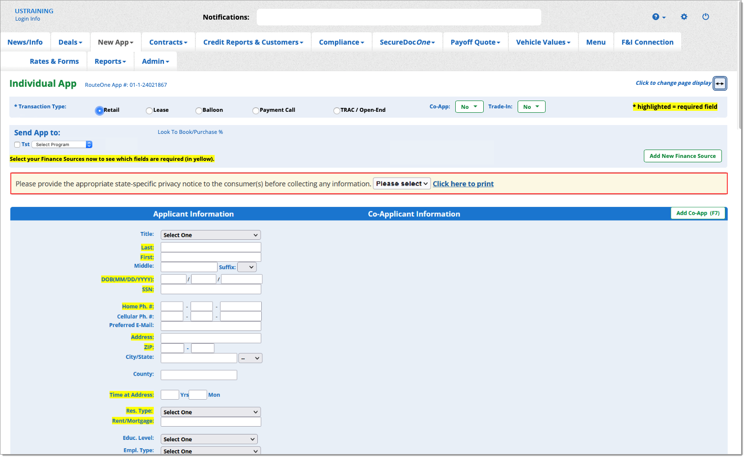 If you are a Digital Retail subscriber, a link to the State-Specific Privacy Notice will appear below form fields for the applicant and co-applicant to review as necessary prior to submitting their personal information.