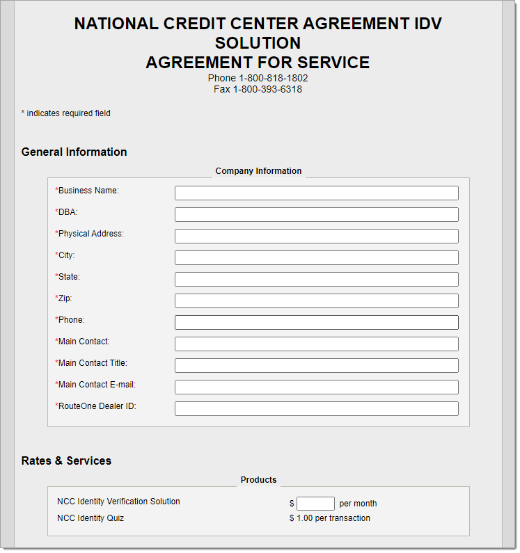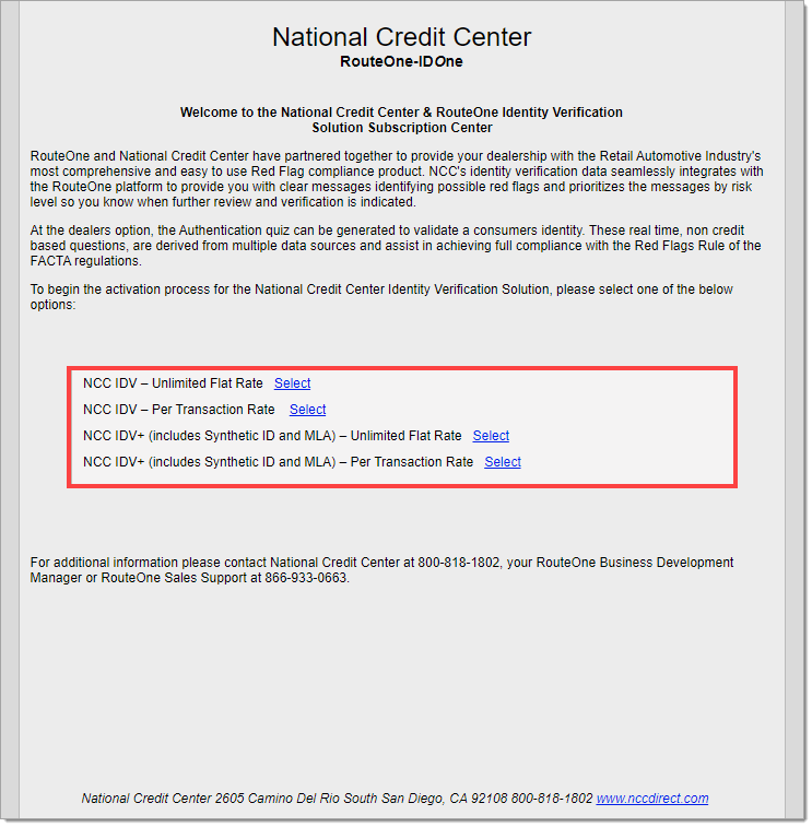 If the NCC pop-up message does not appear, click the link at the bottom of the page that says ‘NCC RouteOne || IDV Signup.’