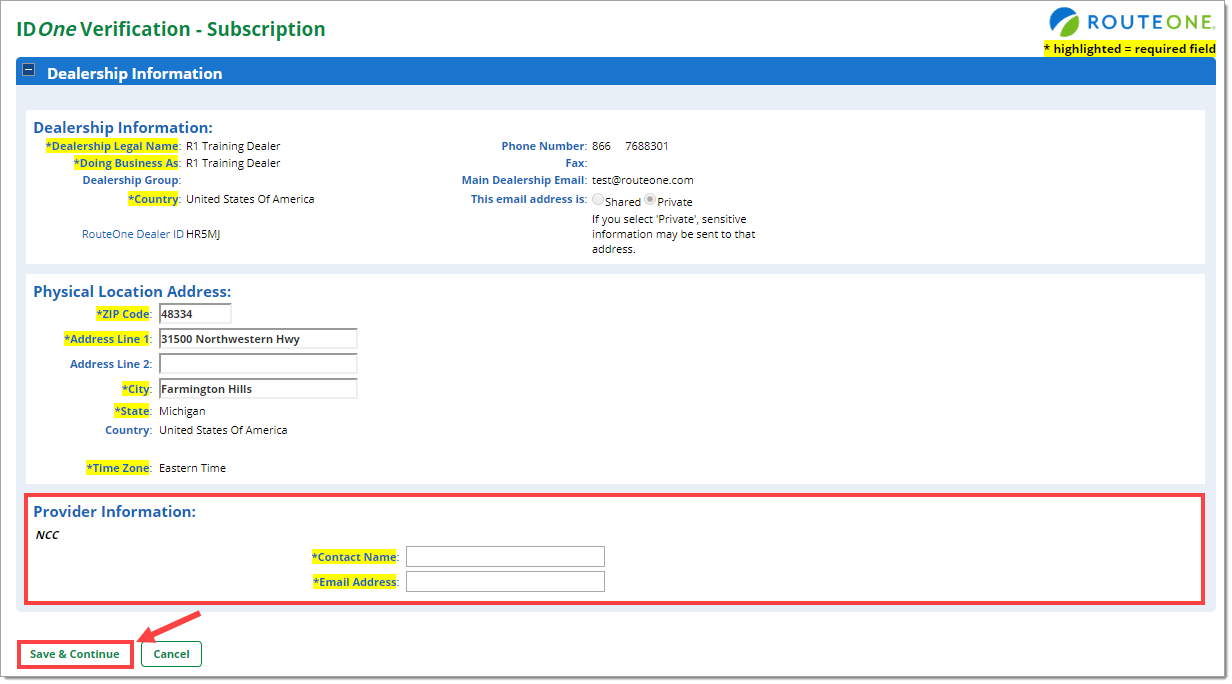 You will be navigated to the ‘IDOne Verification - Subscription’ page. In the ‘Provider Information’ section, enter the required information.