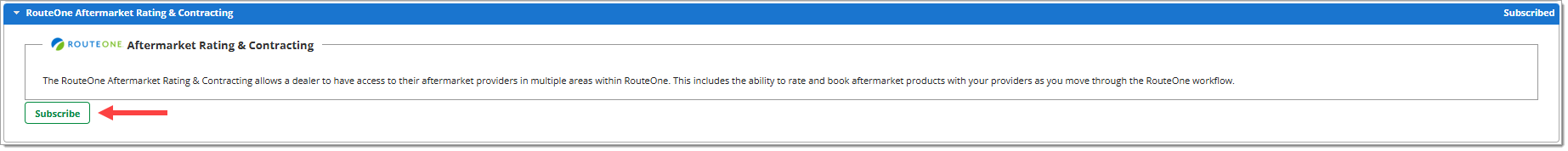 - If you have not yet subscribed to Aftermarket Rating and Contracting, see the ‘Subscribing to Aftermarket Rating and Contracting’ section of this guide.