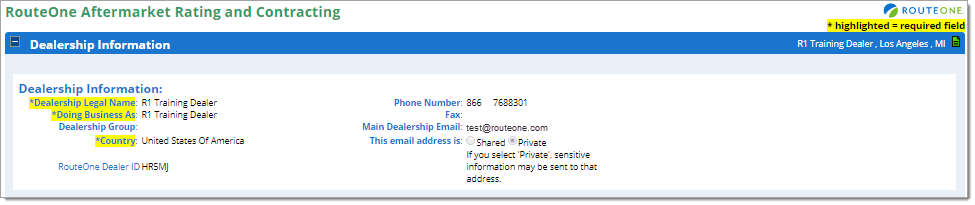 You will be navigated to the ‘RouteOne Aftermarket Rating and Contracting’ page.