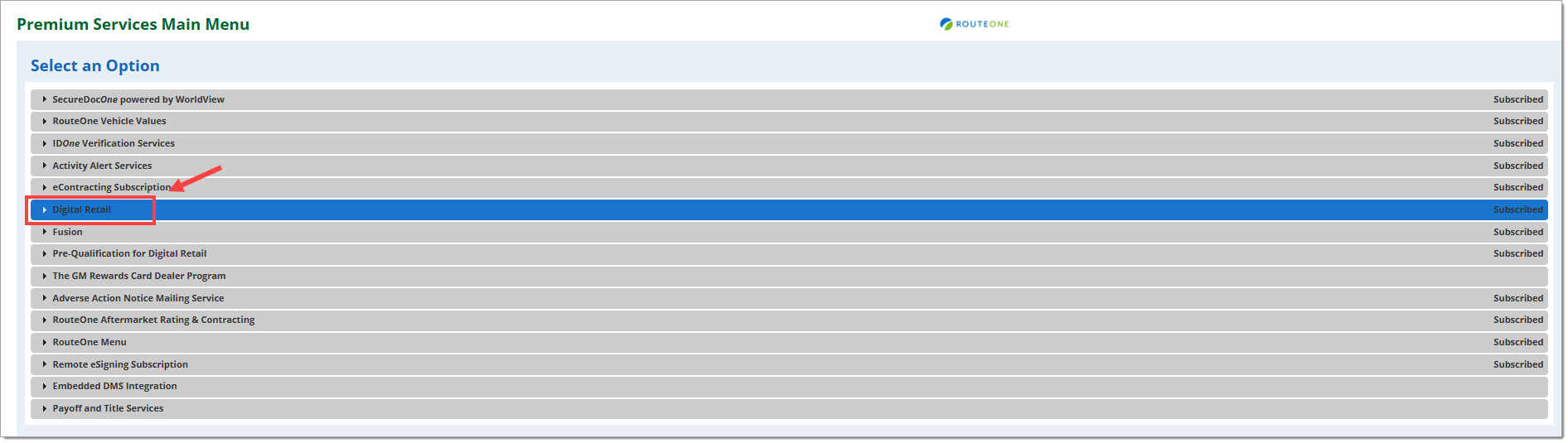 In Premium Services, scroll down to Digital Retail and click to expand the section.