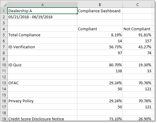 How the Dealer Compliance Dashboard Looks When Exported to CSV