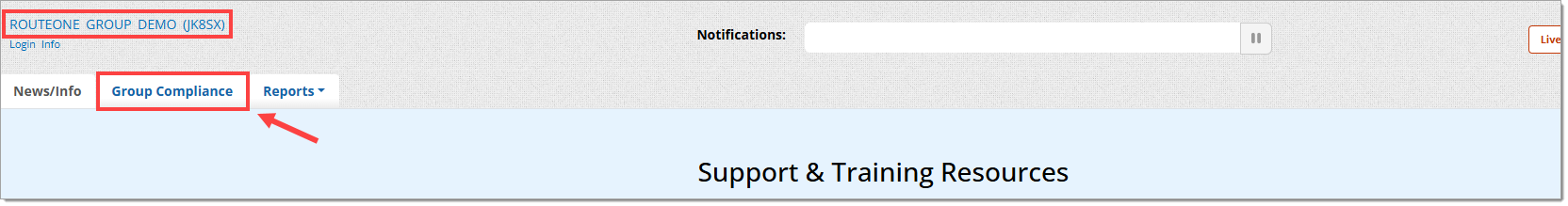 To navigate to the Group Compliance Dashboard, click on the ‘Group Compliance’ tab at the top of the page.