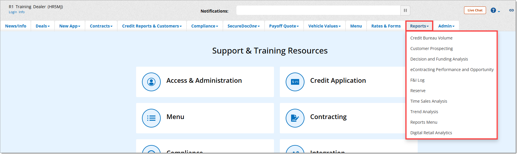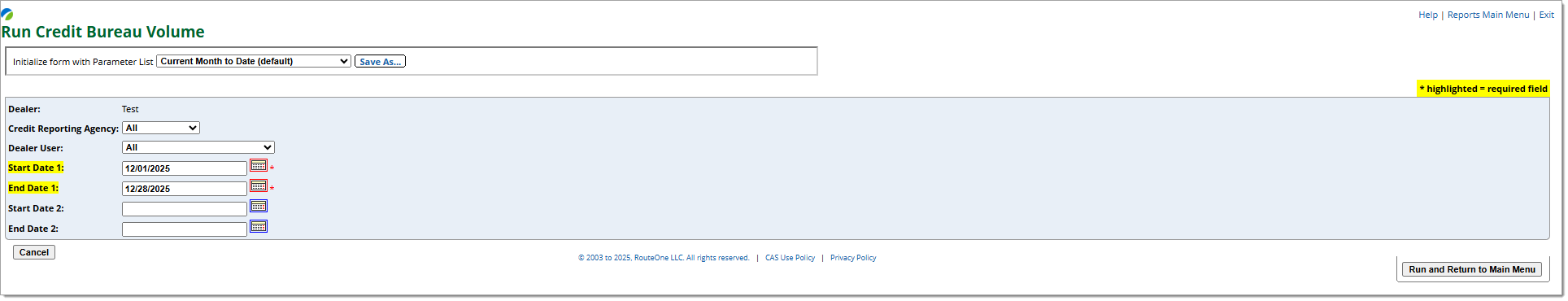 If your organization is associated with more than one dealership, you may contact the RouteOne Support Team at 866.768.8301 to learn how to enable free group reporting (requires Major Account/Group Participation Agreement). Group reporting combines multi-dealership data into a single report.