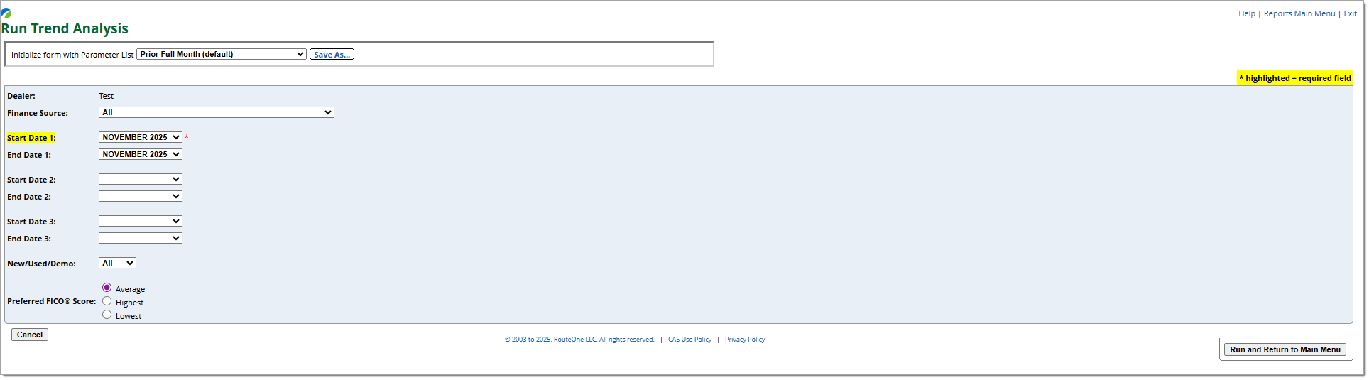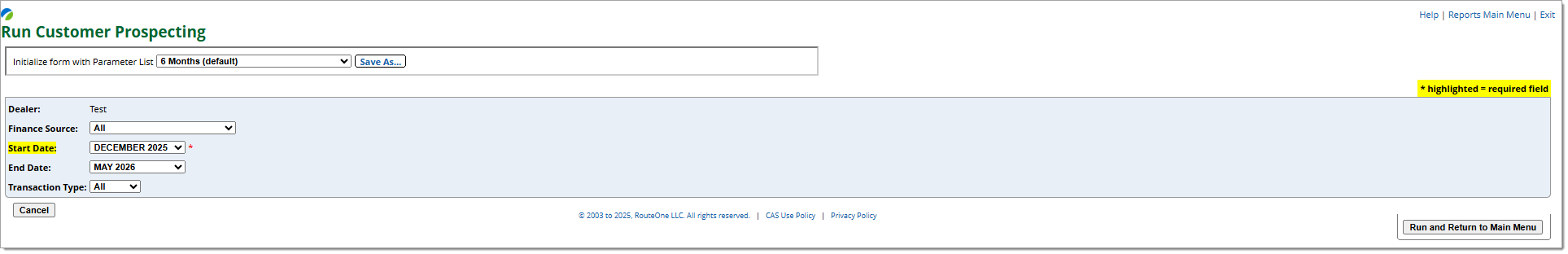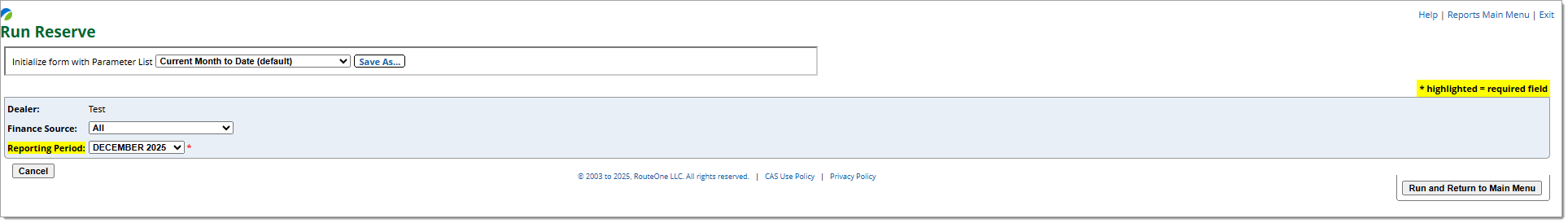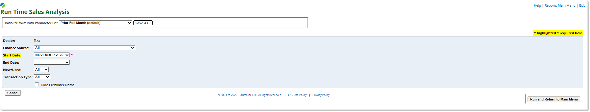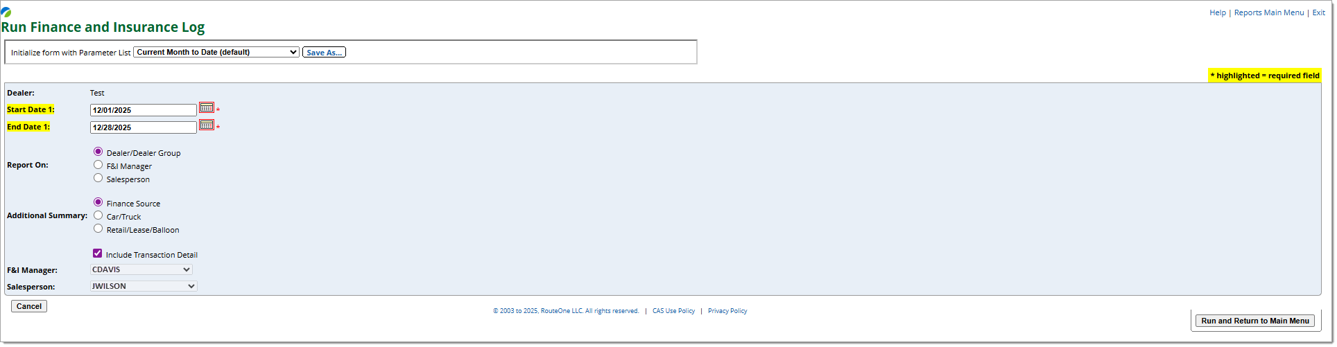• You can customize the report parameters (e.g. timeframe, dealership, finance source).