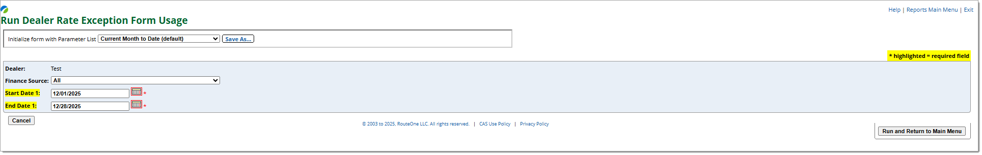 Contains a list of all booked / funded contracts for your dealership and whether or not those contracts have a completed Dealer Rate Exception Form.