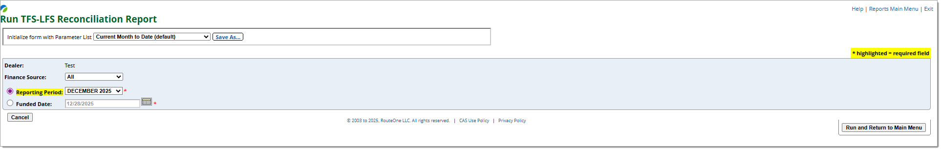 Dealer Reconciliation Stand-alone report, electronically available for TFS/LFS dealers supporting this feature.