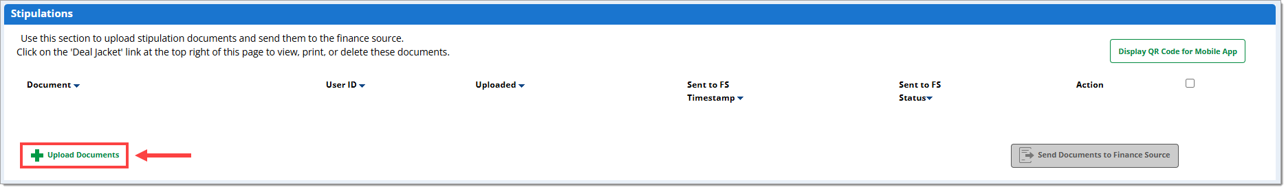 You can now select the required documents and send them to the finance source using the Stipulation Document Capture functionality.