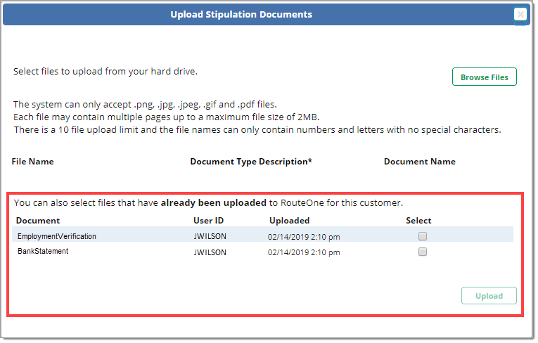 Adding Uploaded Documents to the Stipulations