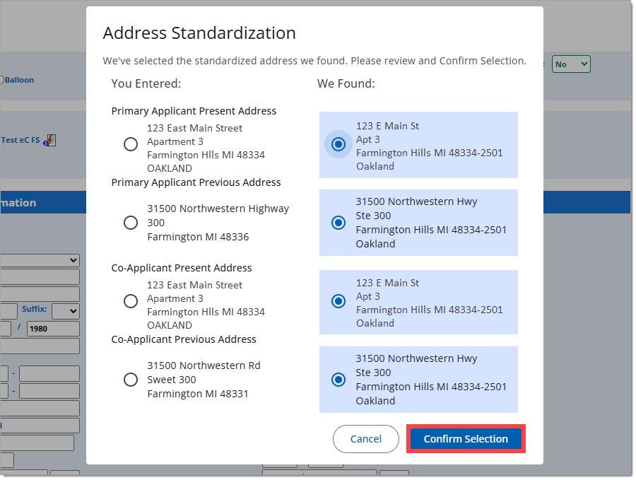 Click ‘Confirm Selection’ to update the addresses to the presented format.