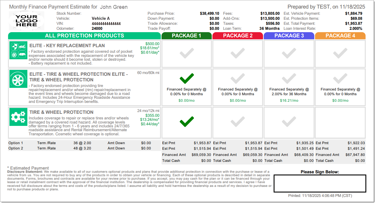 You will be returned to Step 1 of the Deal Wizard, and you can continue with the Menu Presentation. You can change the Deal Type (Finance, Cash, Lease, etc.), the Default Menu, the product pricing, or anything else you would like.