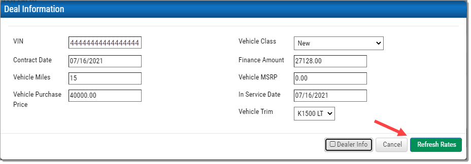 Some dealers also have the ability to update all available products using the VIN rating option.  From the Product Pricing screen, click the ‘Rate Products’ button at the top left-hand corner.