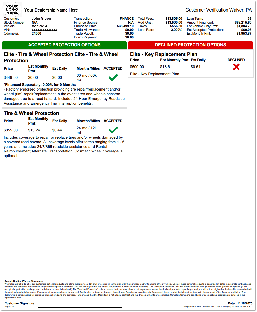 This form should be pre-populated with information from the deal. After printing, the dealer will then complete the bottom left-hand section of the form.
