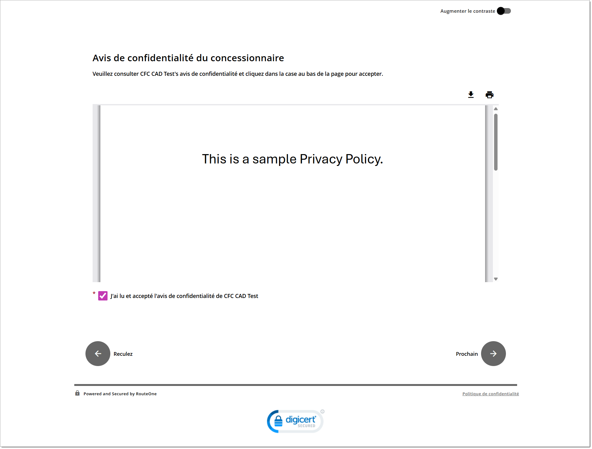 • Exemple :  Nous avons intégré https://www.routeone.net/digital-retail-ui/?dealerId=ABCDE à notre site Web d’établissement concessionnaire https://www.achetezunebonnevoiture ici.com.