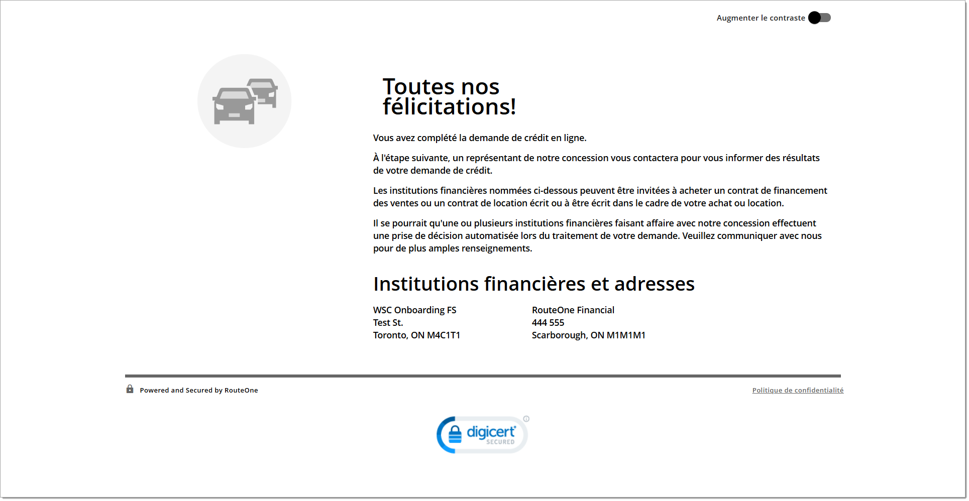 Il s’agit de la fin du flux de demande de crédit direct au consommateur.
