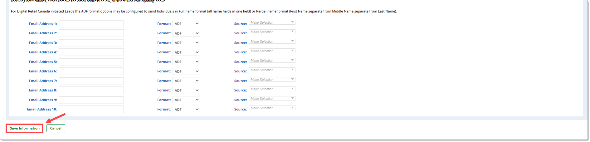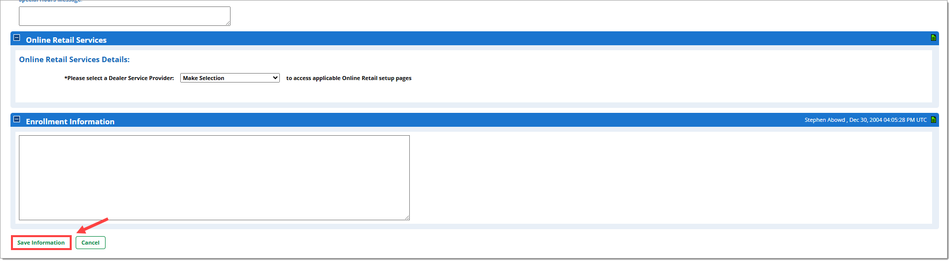 When you are finished updating your dealership preferences, click the ‘Save Information’ button at the bottom of the page to save your changes.