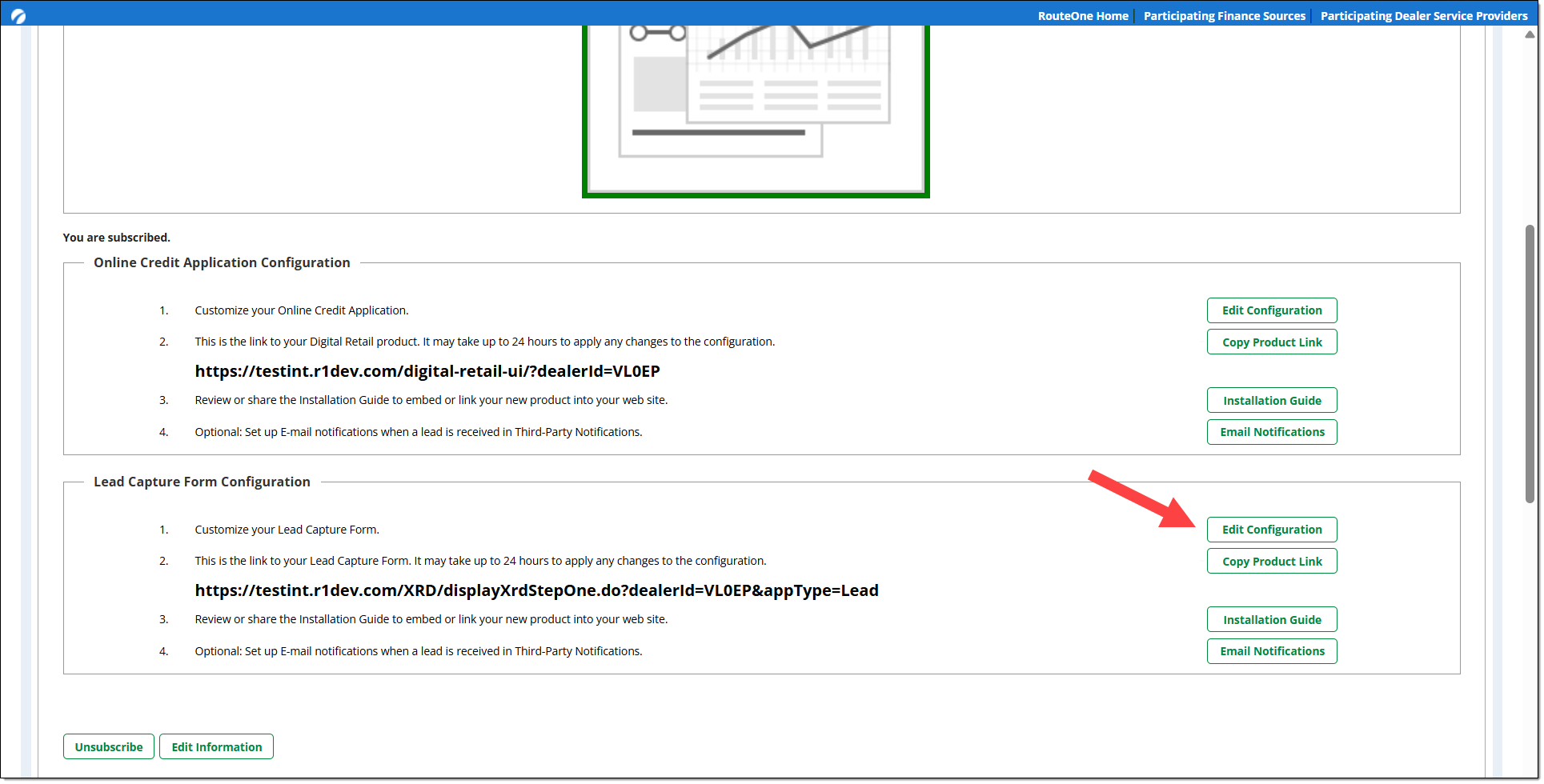 Scroll down to the ‘Online Credit Application Configuration’ section and click on the ‘Edit Configuration’ button.