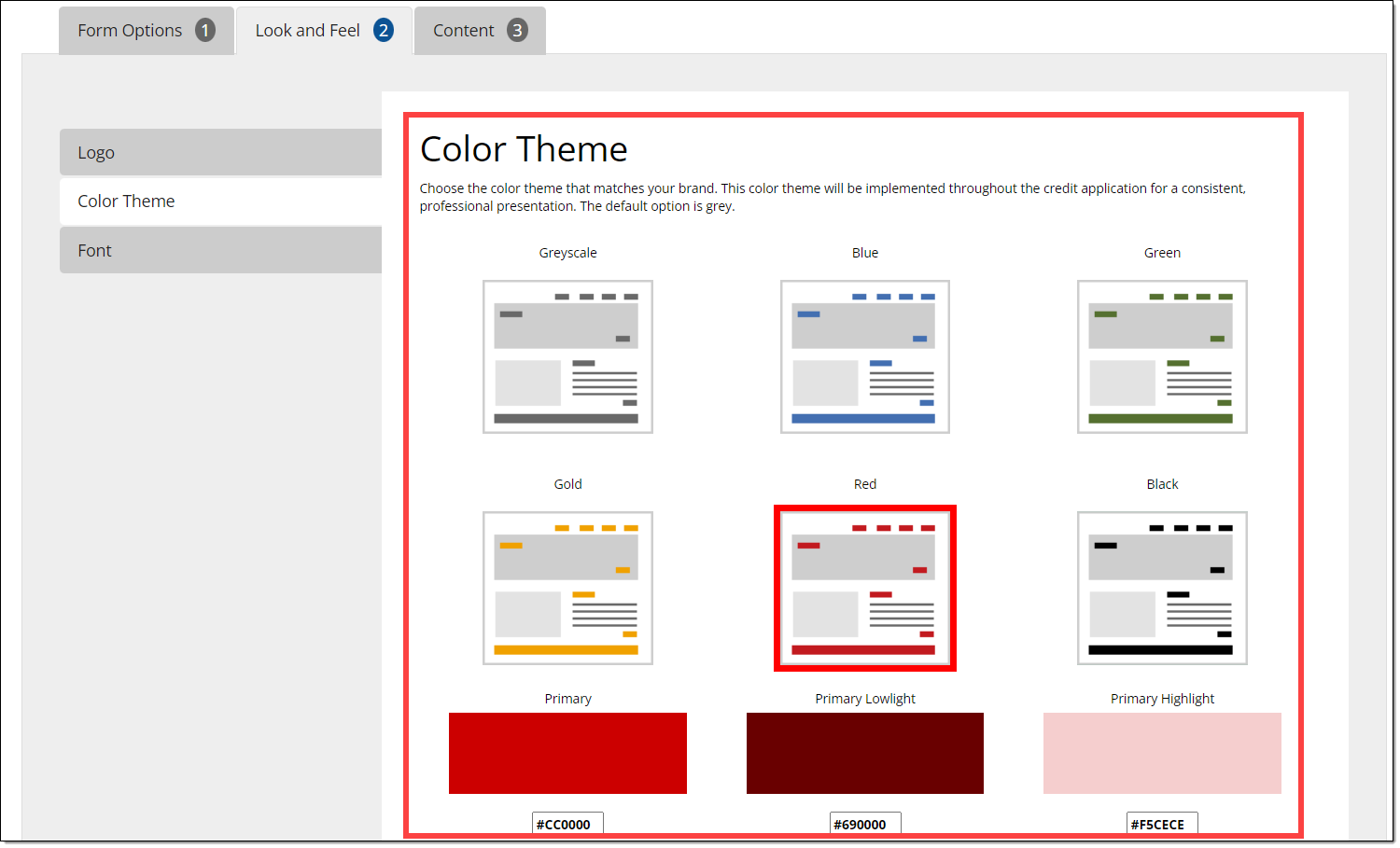 The color theme you select will be implemented throughout the Lead Capture Form for a consistent, professional presentation. The default color option is grey.