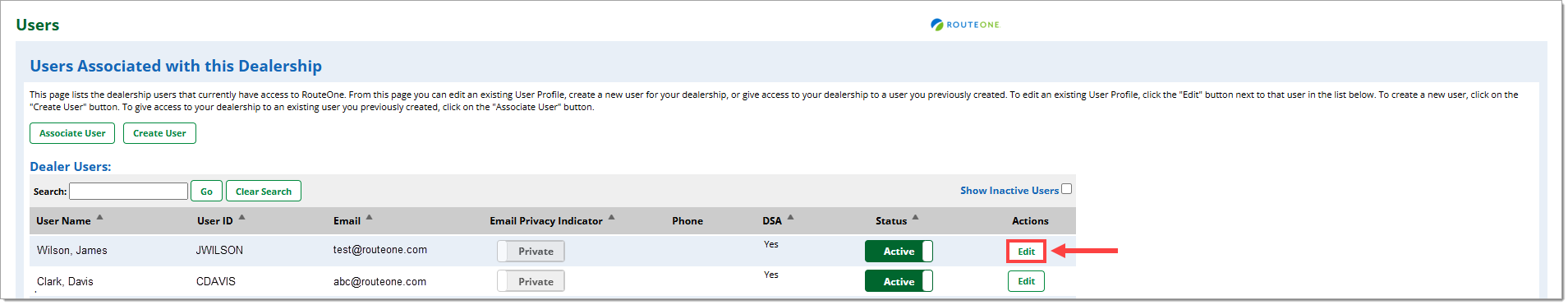 Note: User permissions may only be edited by Dealer System Administrators (DSAs).