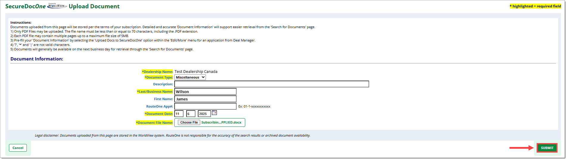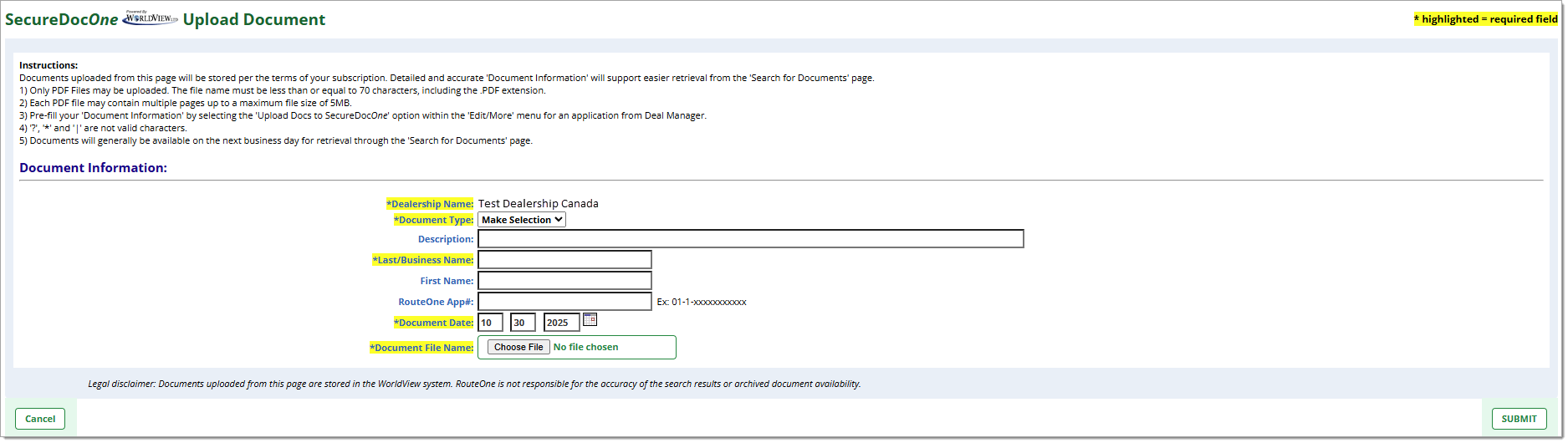 Uploaded documents will be available in the SecureDocOne tab within one (1) business day.