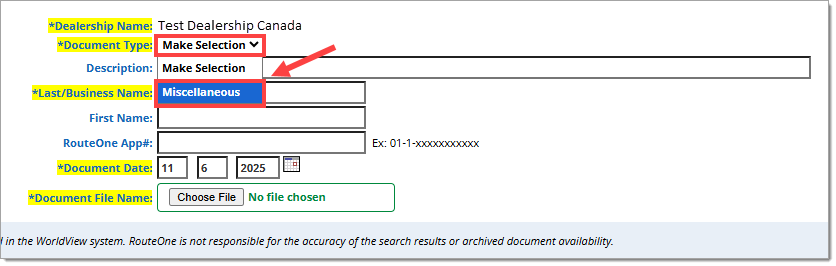 Under the ‘Document Type’ dropdown menu, select ‘Miscellaneous.’