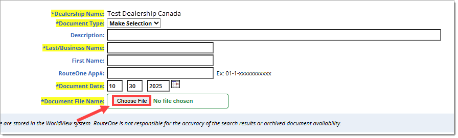 Note: Not all documents are stored automatically. RouteOne generated documents and documents uploaded to the Deal Worksheet (those that are transmitted to the Finance Source via Electronic Document Delivery and the Ready to Fund button) are automatically uploaded to SecureDocOne overnight. All other documents must be manually stored in the SecureDocOne tab.